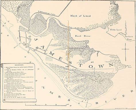 Click on map for an 8×10 image you can print. After the failure of the roanoke colonies , investors in the virginia company of london were anxious to find profit farther to the north, and in april 1607 three ships of settlers arrived at the chesapeake bay. 2007 site map of historic jamestowne.